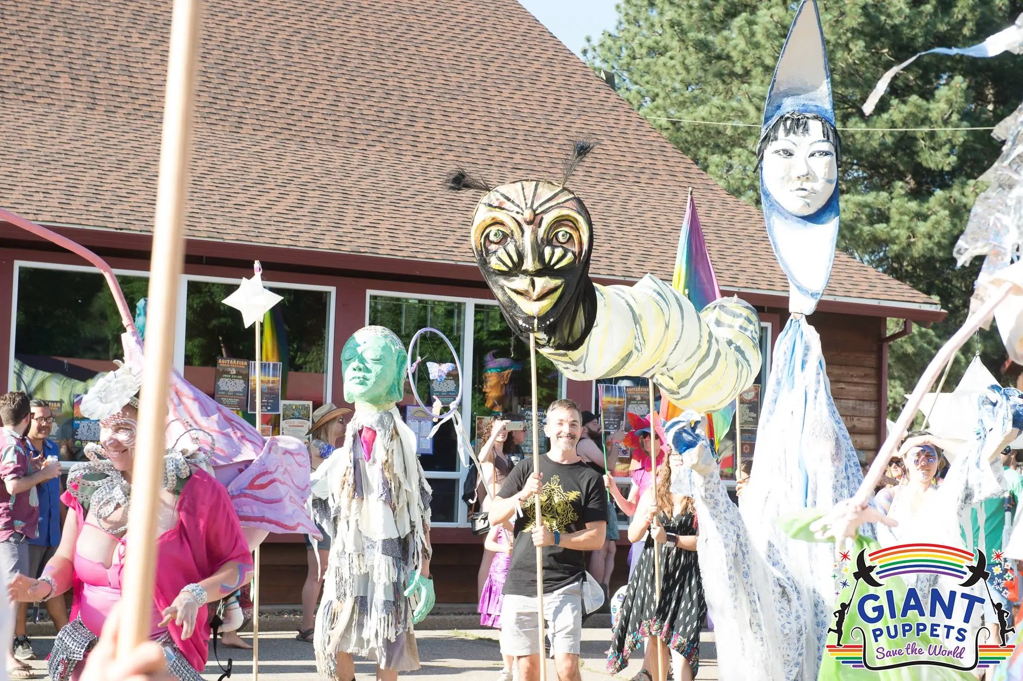 Cornelius the Caterpillar Cornelius the Monarch Caterpillar is a 3 person puppet made of papier mache, silk, wire, feathers and bamboo. Cornelius lights up at night too! Share this: Click to share on X (Opens in new window) X Click to share on Facebook (Opens in new window) Facebook Like Loading... Related
